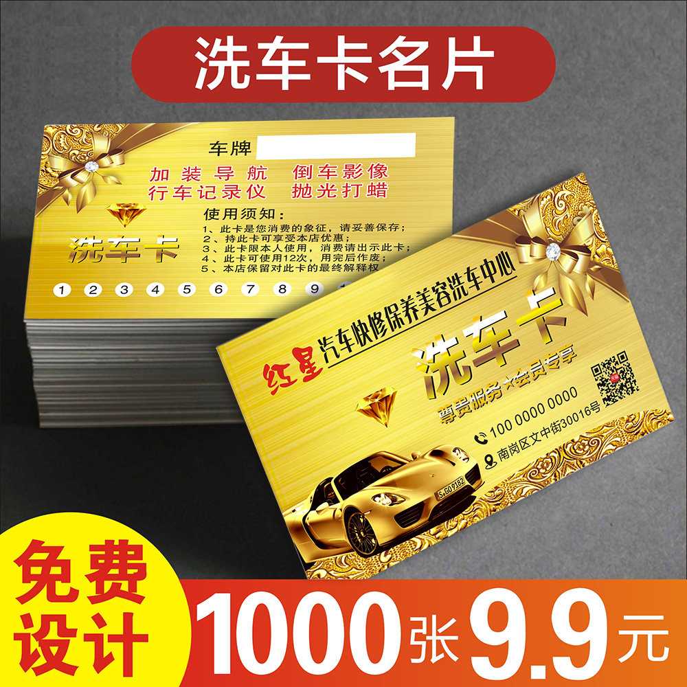 洗车卡名片制作汽车美容维修打孔次卡定制会员卡塑料pvc卡片印刷