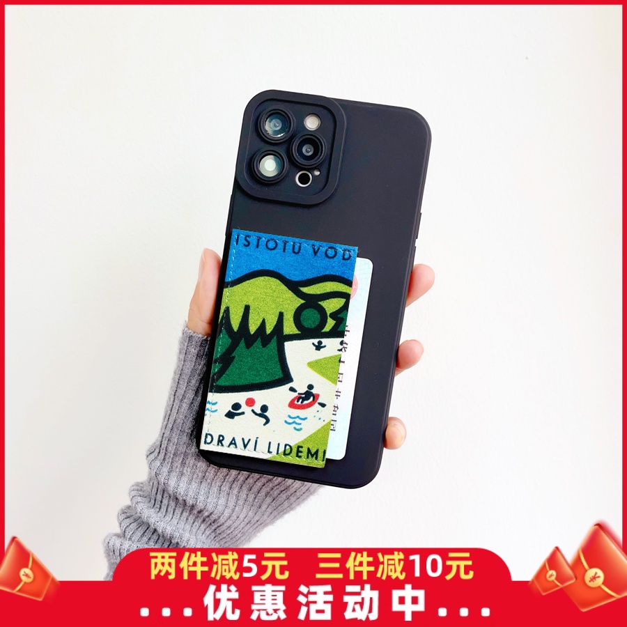 小清新北欧小河戏水创意侧向卡包适用iPhone16promax手