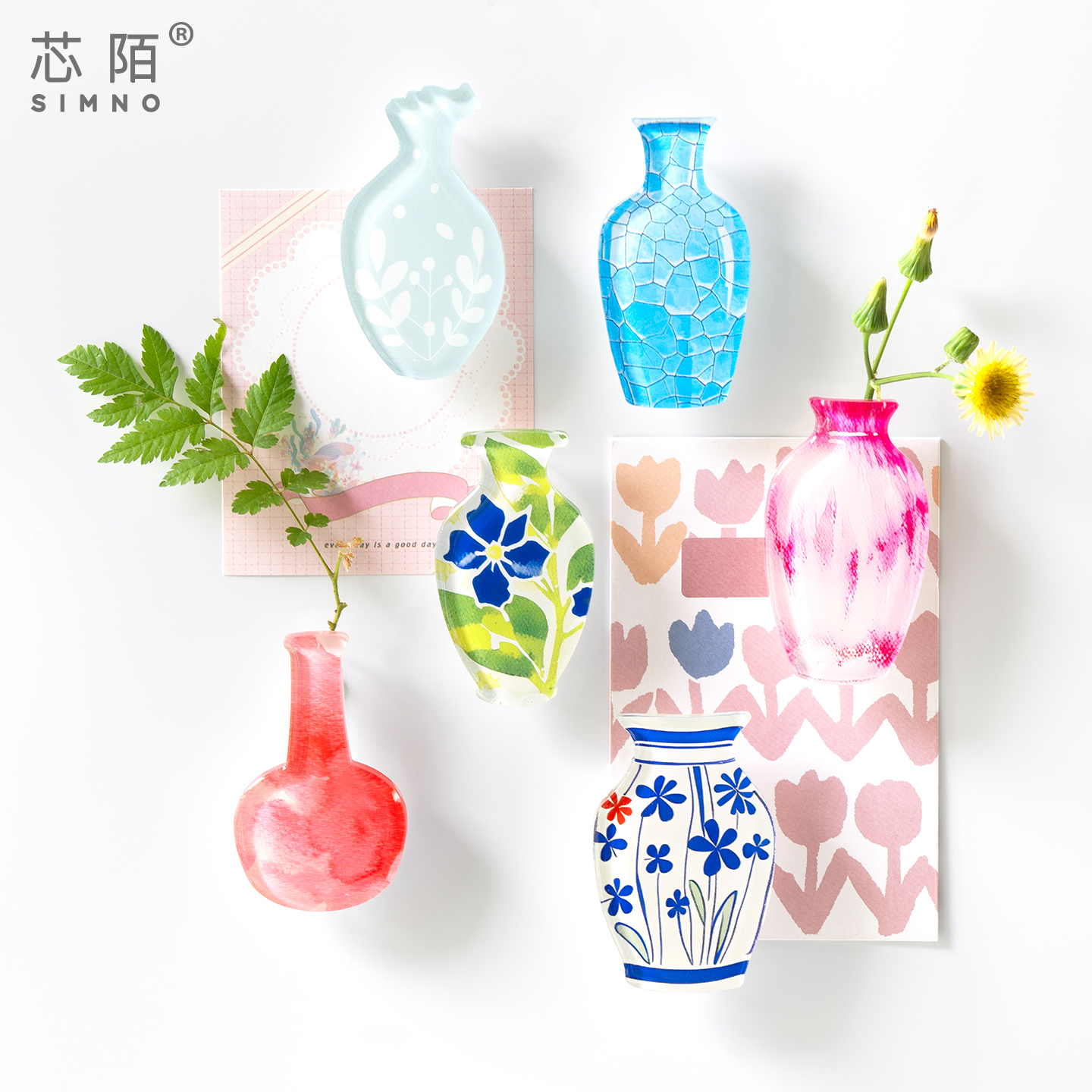 芯陌创意磁吸冰箱贴花瓶个性