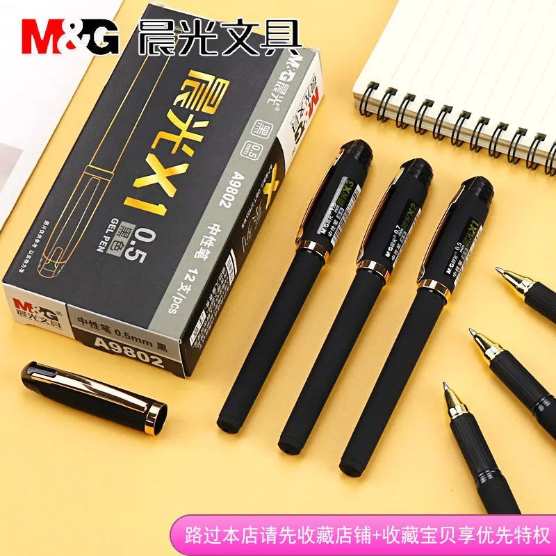 晨光高档三倍密度黑色笔中性笔0.5mm子弹头按动重手感学生书写笔