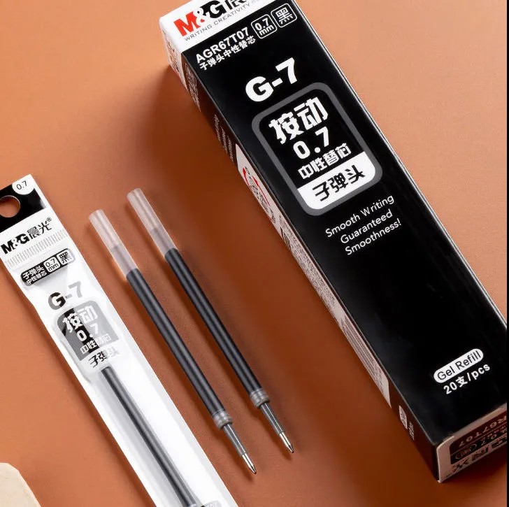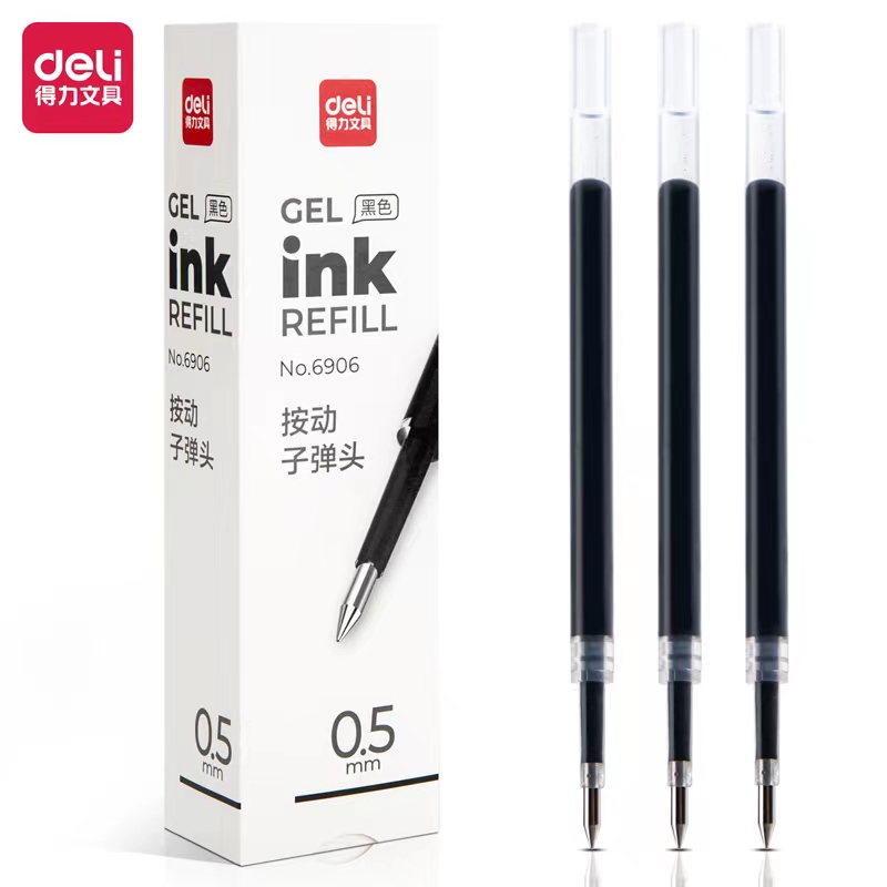 得力按动笔芯0.7/0.5mm按压中性笔替芯黑色拔盖笔芯弹簧头子