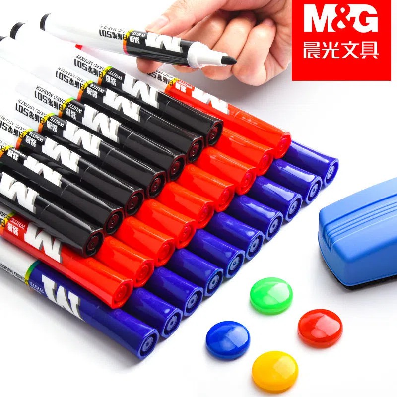 晨光单头可擦白板笔老师黑板笔黑红蓝水性墨水易擦白板笔2201