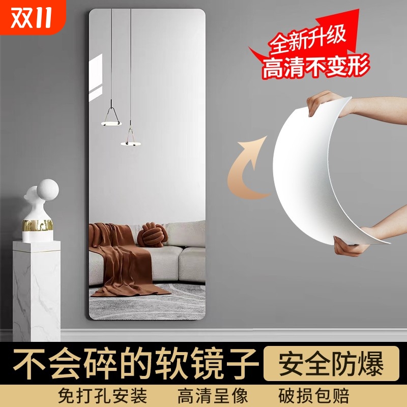 镜子贴墙自粘亚克力软镜子家用高清壁挂镜面墙面试衣镜全身穿衣镜