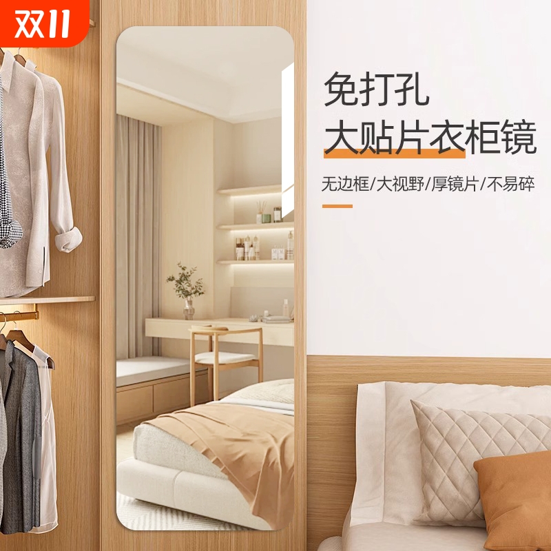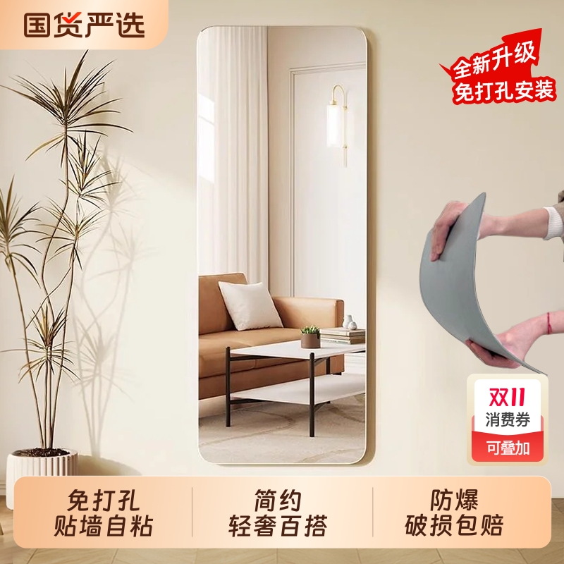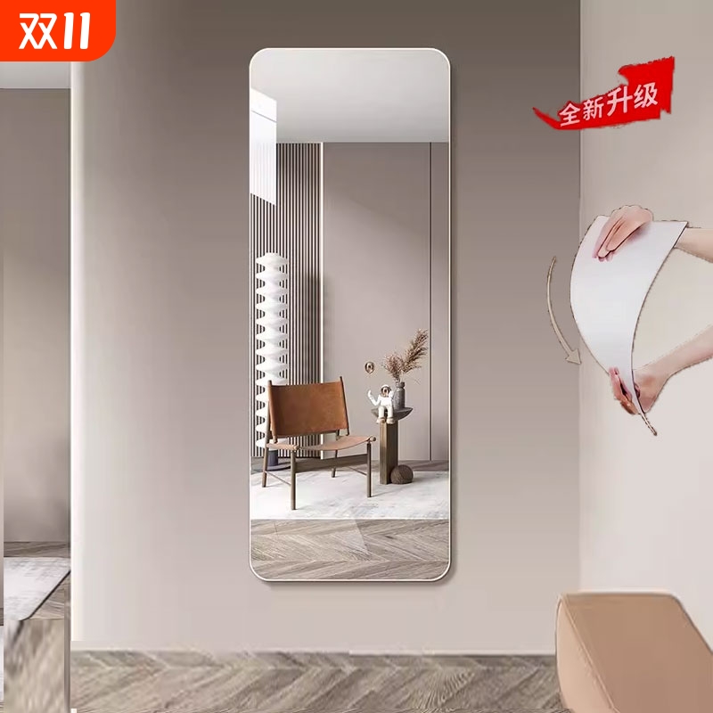 镜子全身落地镜家用贴墙自粘穿衣镜女生卧室挂墙试衣镜玻璃衣柜