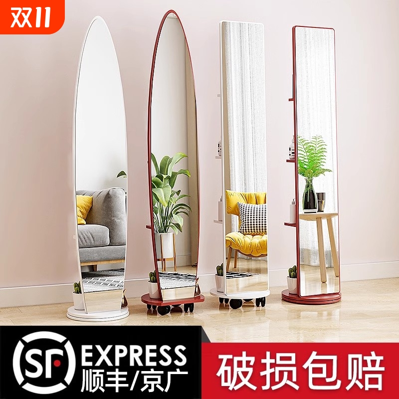 椭圆镜全身镜卧室穿衣镜家用异形试衣落地镜旋转移动衣帽架带镜子