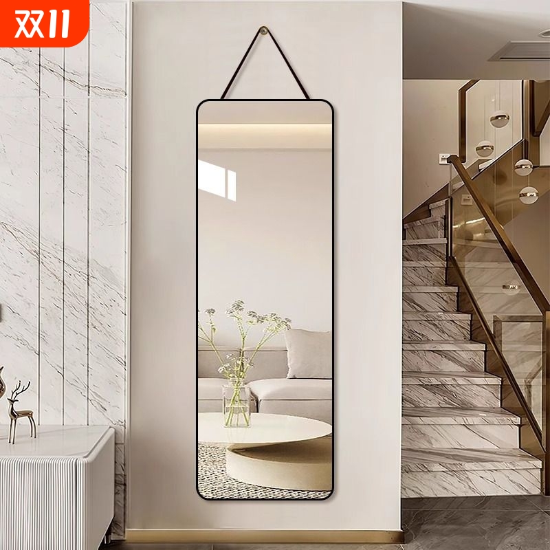 全身镜子贴墙自粘穿衣镜卧室壁挂宿舍落地家用挂绳玻璃挂墙试衣镜