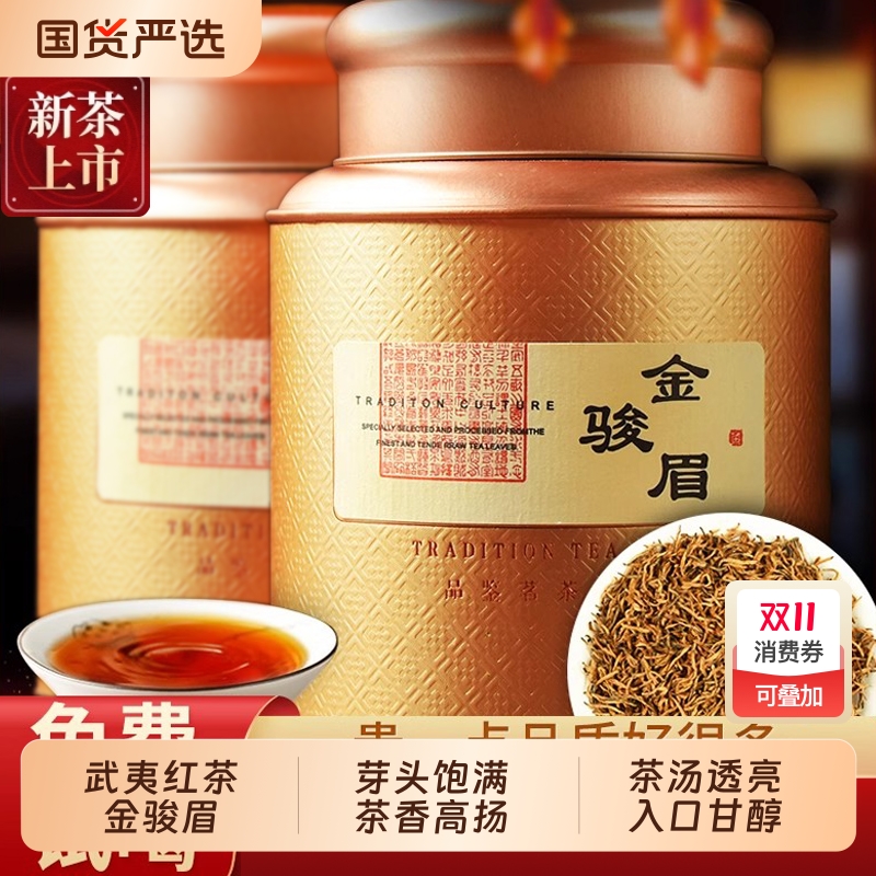 特级金骏眉红茶正宗武夷山原产茶叶浓香型养胃耐泡红茶罐装250g