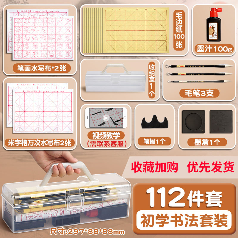毛笔初学书法套装初学者入门专用兼儿童小学生业水写布笔墨纸三砚