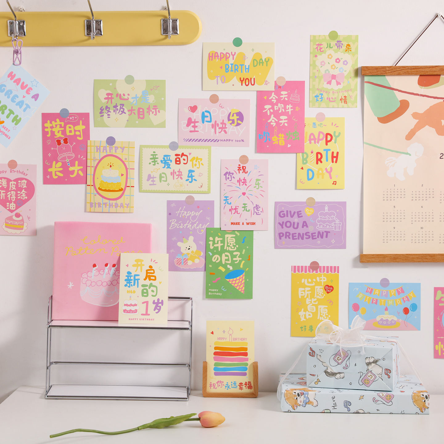 冠淘生日卡通装饰卡片少女心杂志风手账墙面装饰礼物祝福留言卡