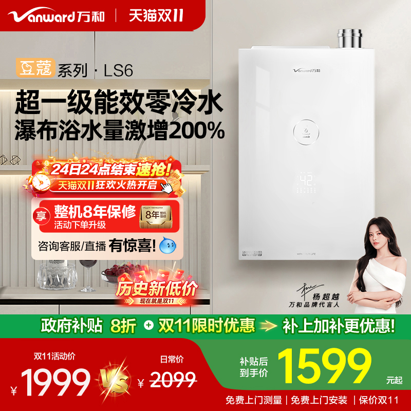 [政府补贴] 万和神舟家用节能增压零冷水13/16升燃气热水器B