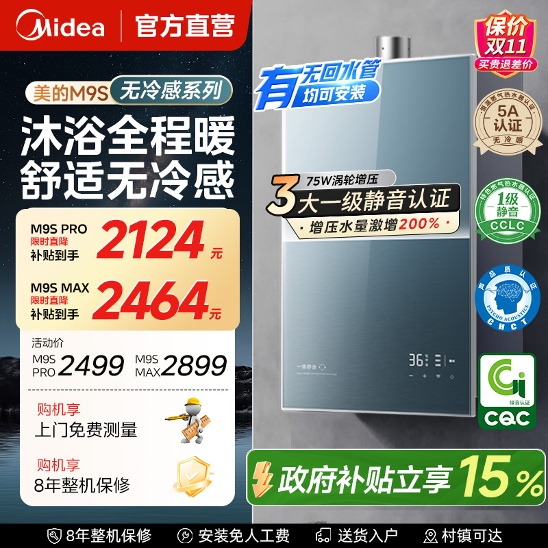 美的燃气热水器安睡无冷感M9SMAX家用16升静音天然气增压零冷