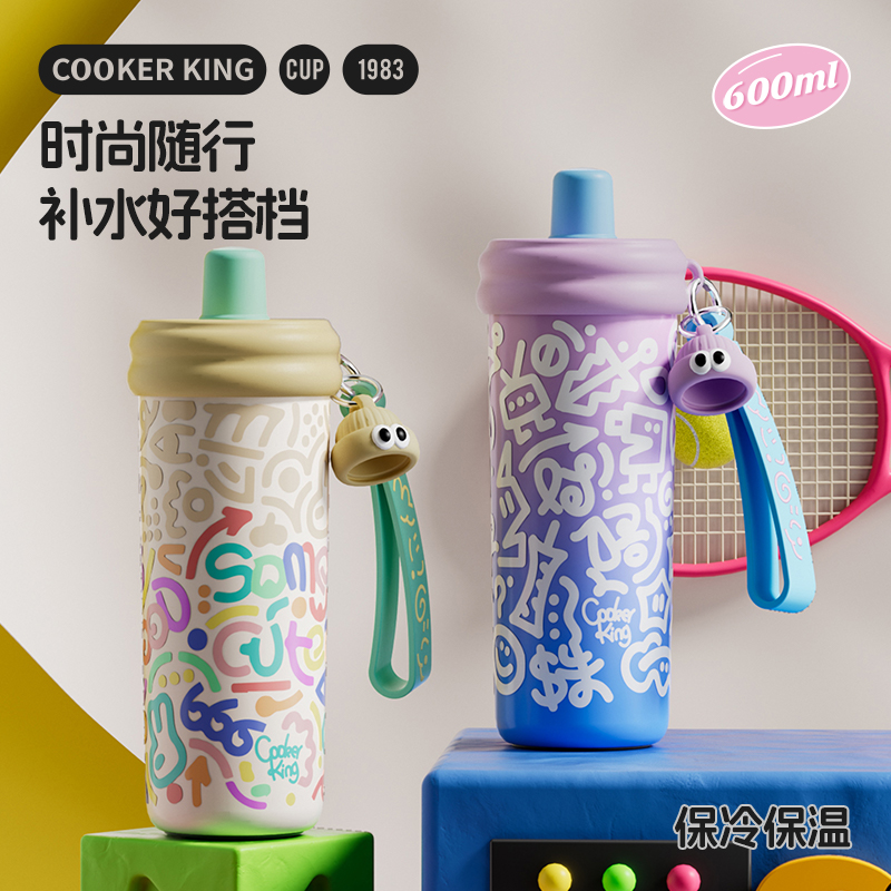 炊大皇保温杯吸管杯大容量高颜值原创涂鸦女生学生保温保冷水杯子