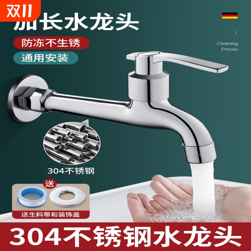 304不锈钢洗衣机水龙头家用拖把池快开加长4分通用单冷多功能龙头