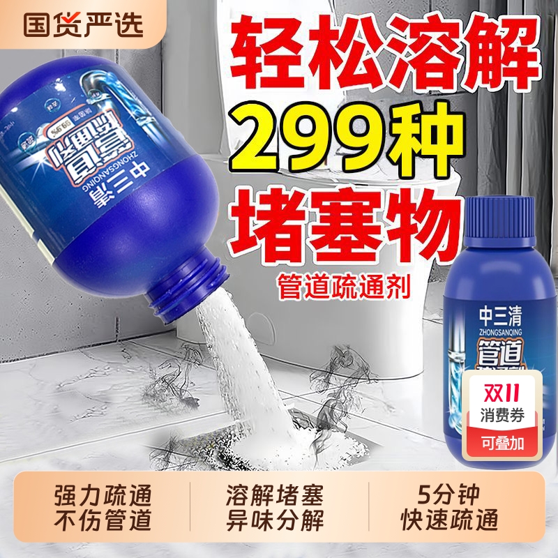 中三清管道疏通剂强力溶解厕所厨房下水道马桶堵塞除臭神器卫生间