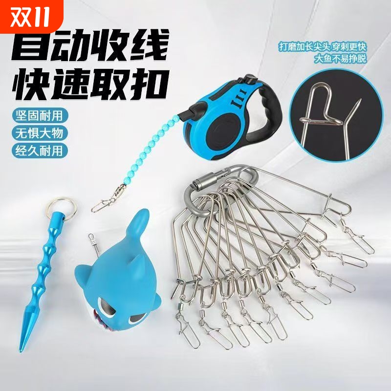 新款活鱼扣自动收线鱼锁大物活鱼鱼锁扣加强不锈钢钢丝包胶鱼锁
