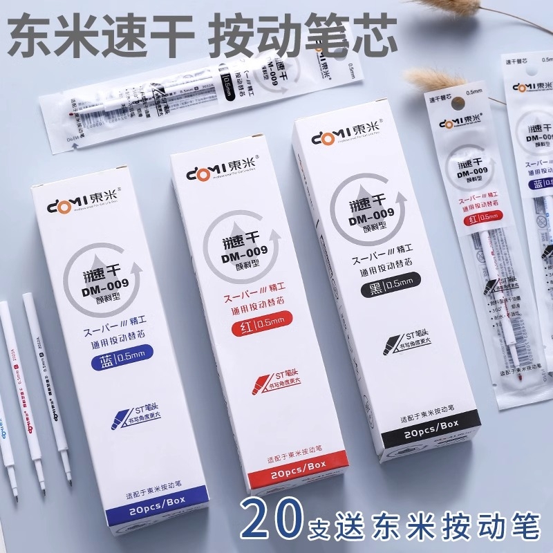 得力按动笔芯ST头速干0.5mm尖锥头摁压式中性笔替芯弹簧子弹头