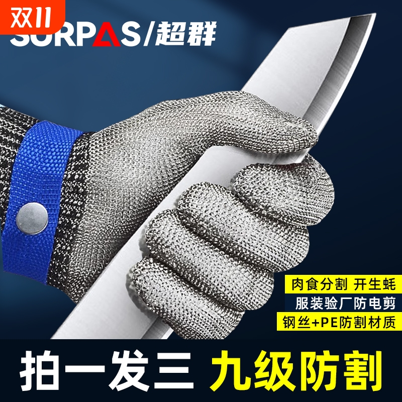 防割手套新款五指钢丝防切金属9级防护加强款不锈钢防扎干活杀鱼