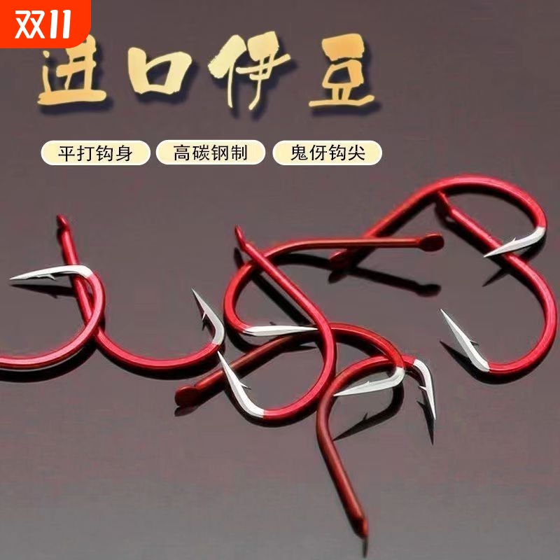 鱼钩精品鬼牙红色伊豆有倒刺散装歪嘴钩加强碳钢小鲫鱼鲤鱼渔具