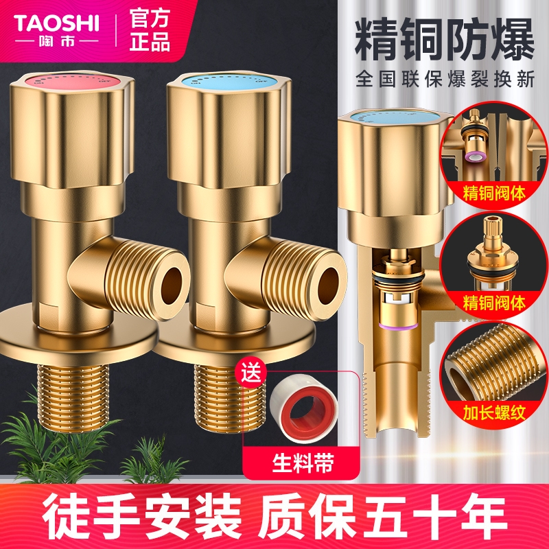全铜角阀加厚加重冷热三角阀浴室厨房马桶热水器4分通用家用黄铜