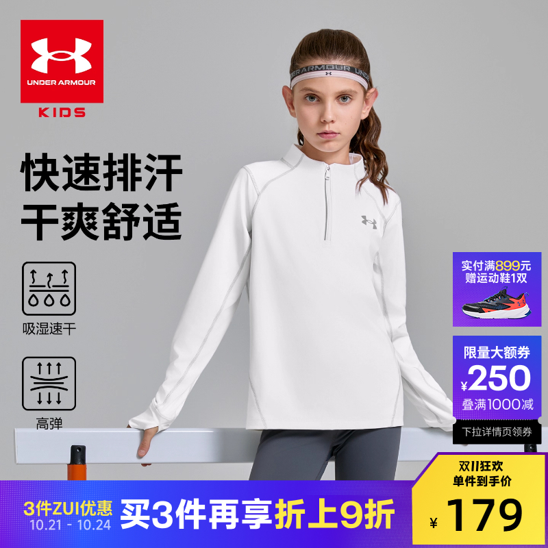 安德玛童装立领运动休闲速干长袖T恤大童秋季新款男女童舒适上衣