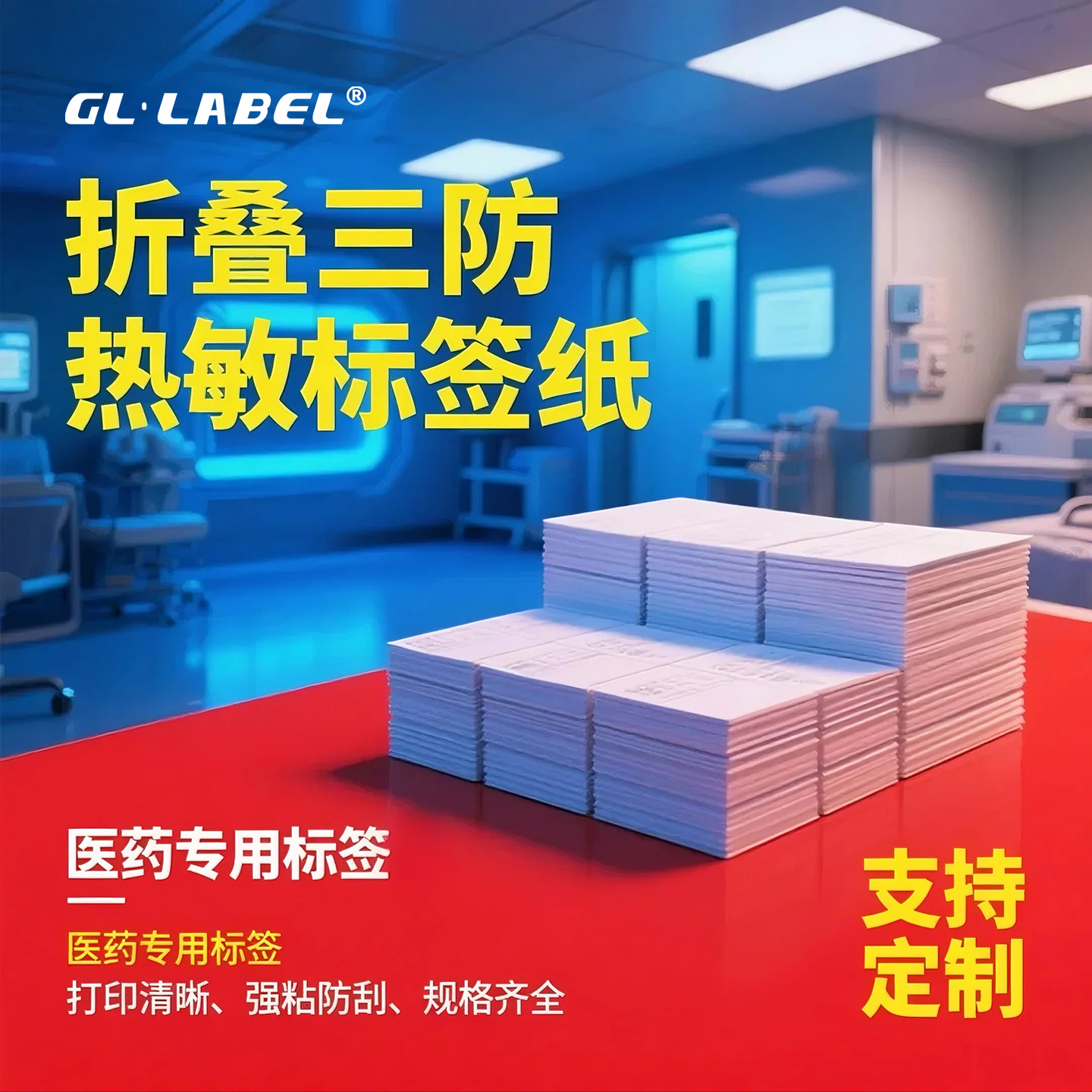 三防热敏标签纸折叠打印不干胶医药店医嘱处方贴40x30 50x3