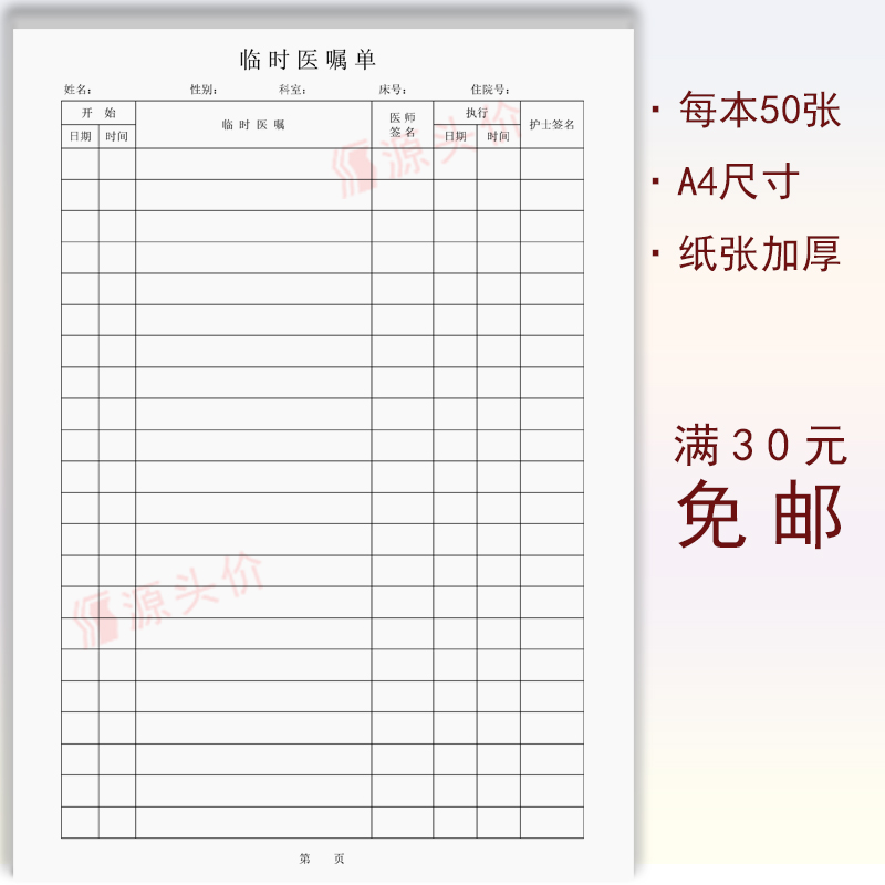 现货临时医嘱单长期医嘱单体温记录单记录表住院病案首页定做定制