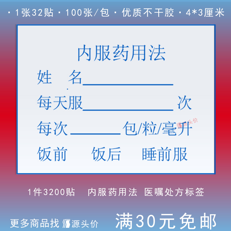 医嘱处方贴纸药房用药指导不干胶诊所标签贴内服药说明500贴包邮
