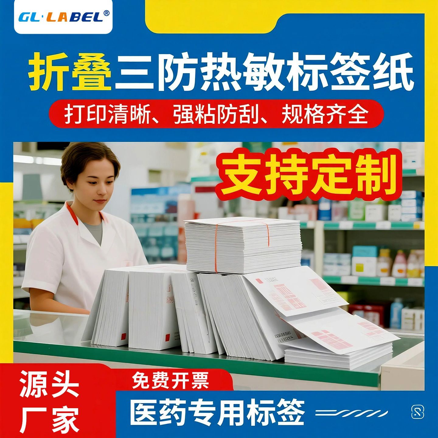 热敏打印纸折叠不干胶标签医药店医嘱处方贴40x30 50x30