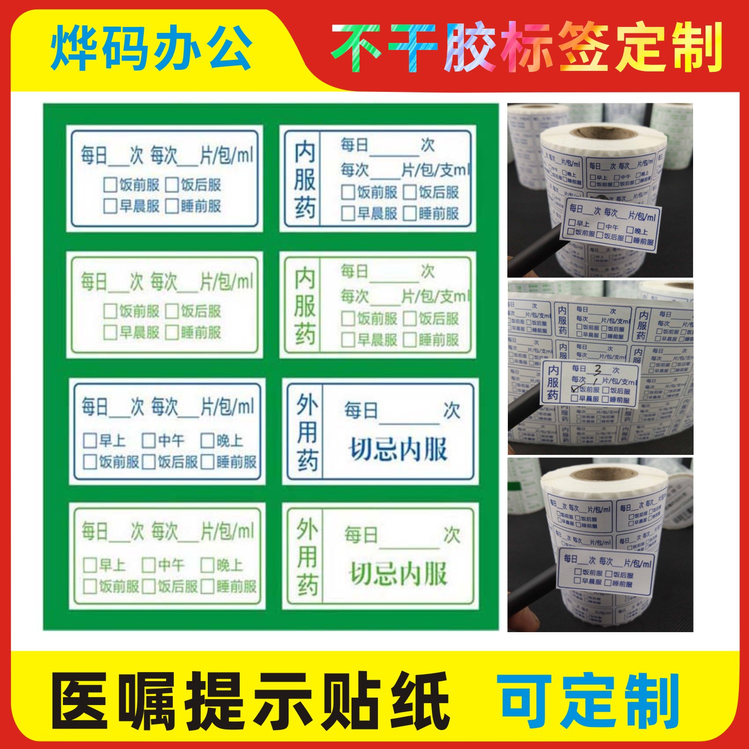 医嘱标签贴纸医院药品不干 乾胶服用法说明诊所药房服用标签