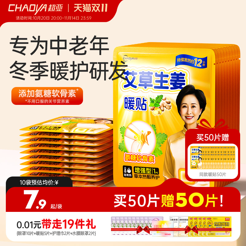 超亚暖宝宝自发热12小时老人专用保暖腰热敷帖艾草生姜发热暖身贴