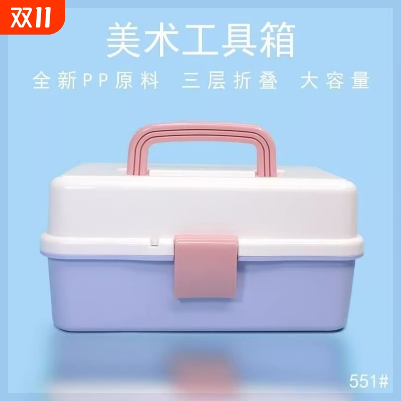 画书法毛笔收纳箱美甲化妆箱家用医药箱加厚三层折叠美术工具箱