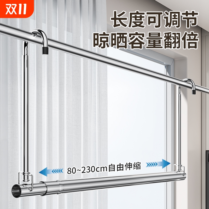 不锈钢伸缩晾衣杆室内阳台晒衣服晒被子晒被杆悬挂式可收纳晾升降