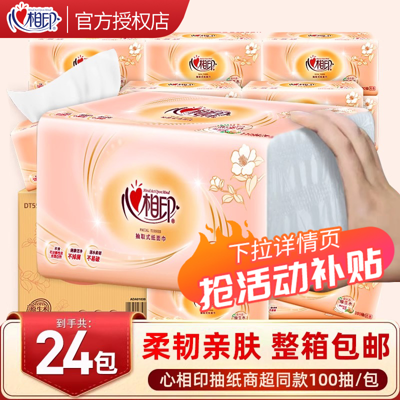 心相印抽纸3层加厚批发家用卫生纸餐巾纸面巾纸大包整箱木浆原生
