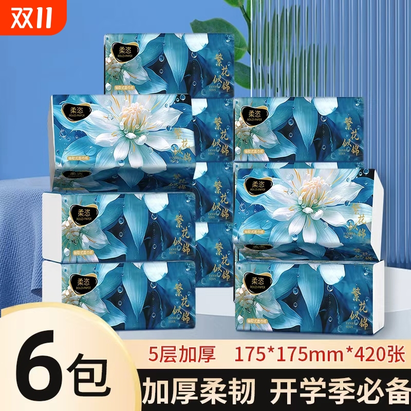 漫花20大包中国风纸巾抽纸家用实惠卫生纸大尺寸餐巾纸手纸面巾纸