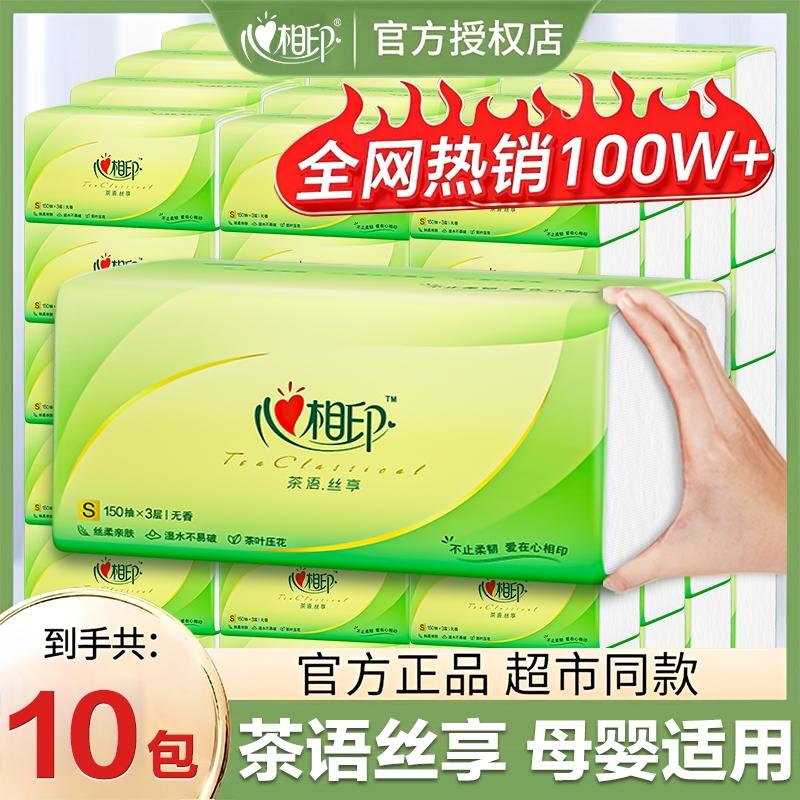 心相印抽纸150抽三层茶语家用原生木浆餐巾纸面巾纸卫生纸擦手纸