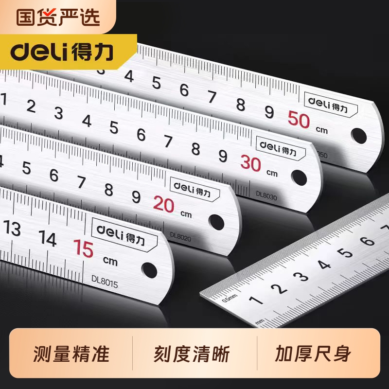 得力钢直尺金属不锈钢加厚钢尺30cm钢尺子20厘米15cm高精度