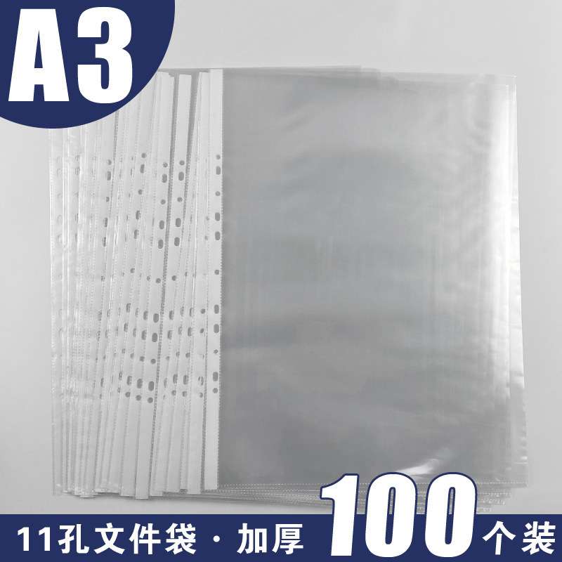 A3文件袋11孔活页文件袋透明打孔袋插页文件袋防水加厚图纸保护袋