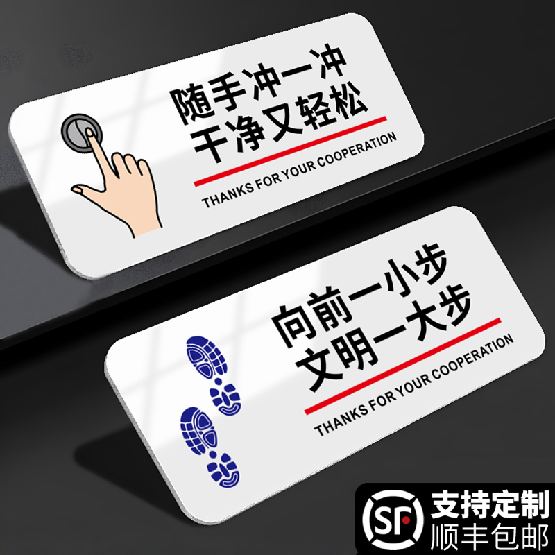 公共厕所标识牌马桶易堵厕纸入篓标牌随手冲一冲干净又卫生提示牌便后
