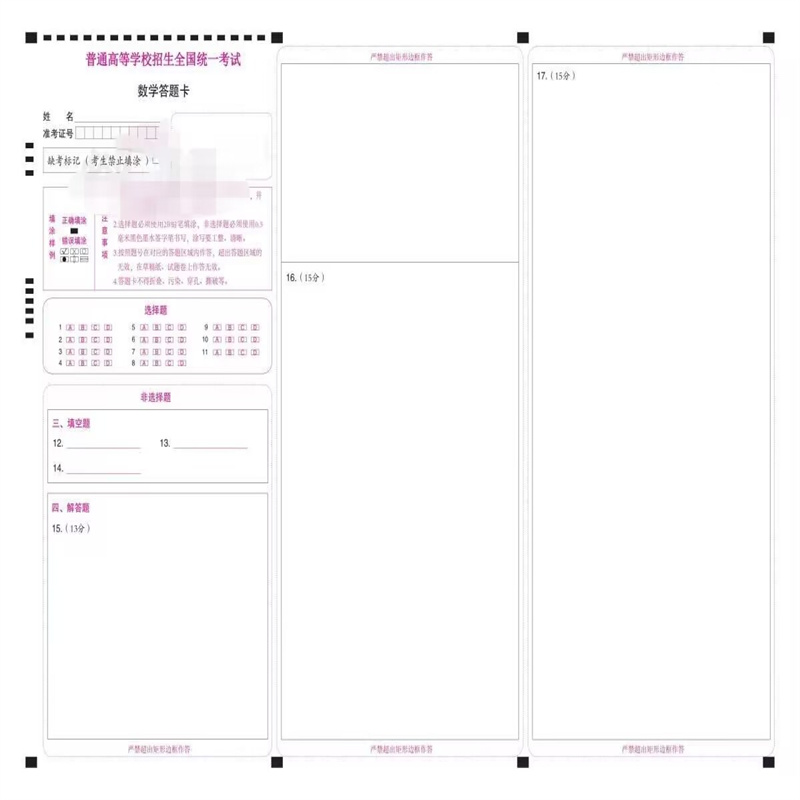 浙江省专升本高等数学模拟答题卡A3双面 120克双胶纸支持定制各