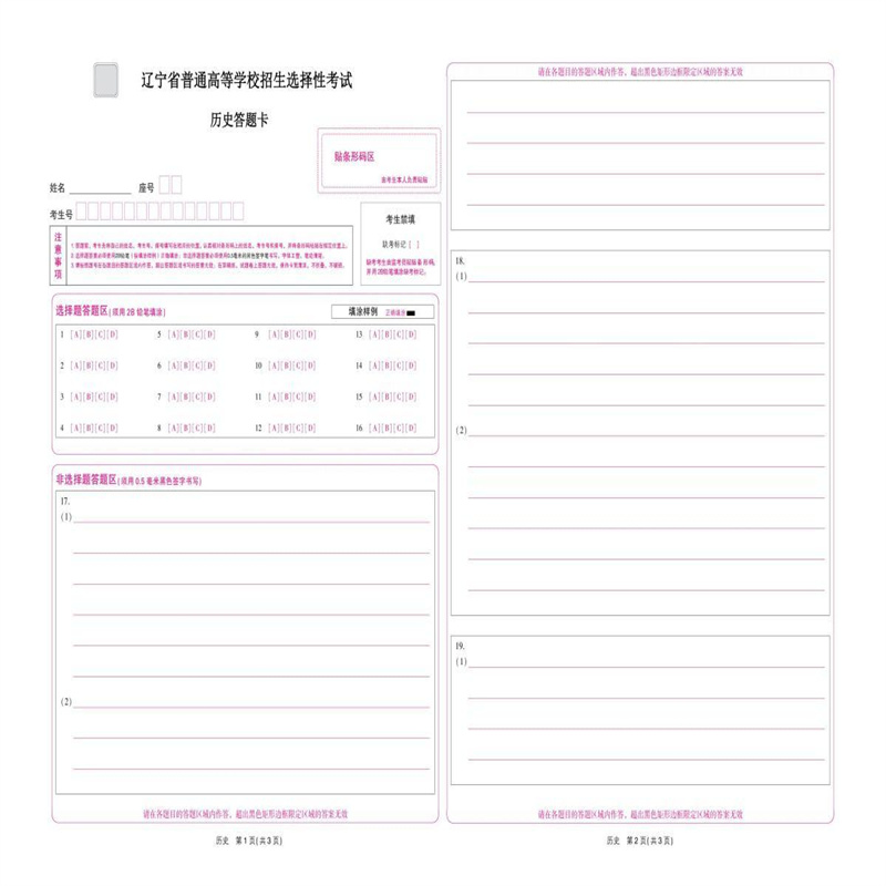 2025年 辽宁省高考历史模拟答题卡 A3双面 120克双胶纸支