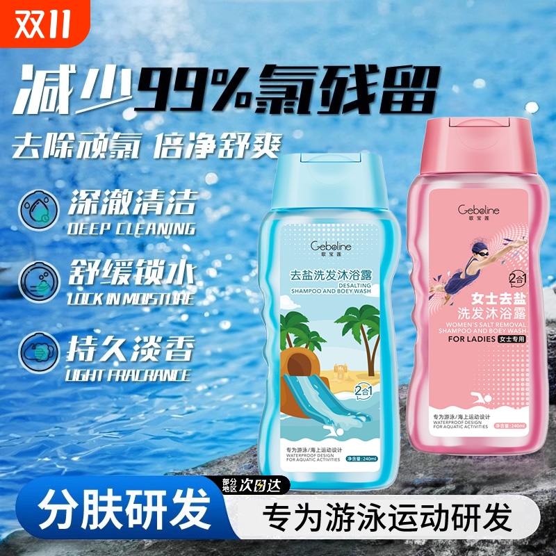 游泳专用除去氯洗发水沐浴露旅行装去氟禄录三二合一儿童成人套装