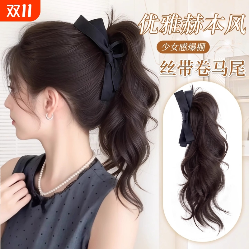 假发辫自然女仿真发蝴蝶结抓夹卷马尾马尾增发量假发造型人发
