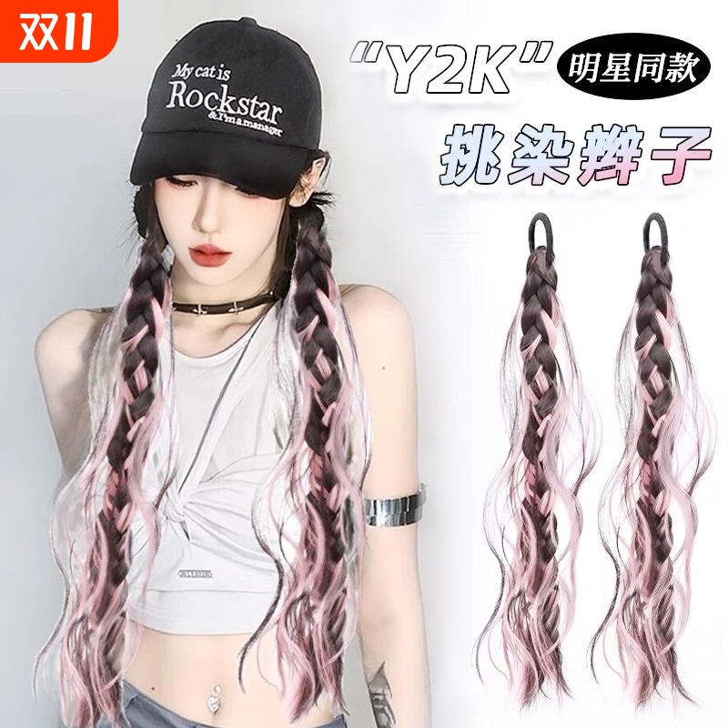 假发辫子女马尾甜酷双麻花辫网红挑染仿真人编发彩色辣妹拳击辫子