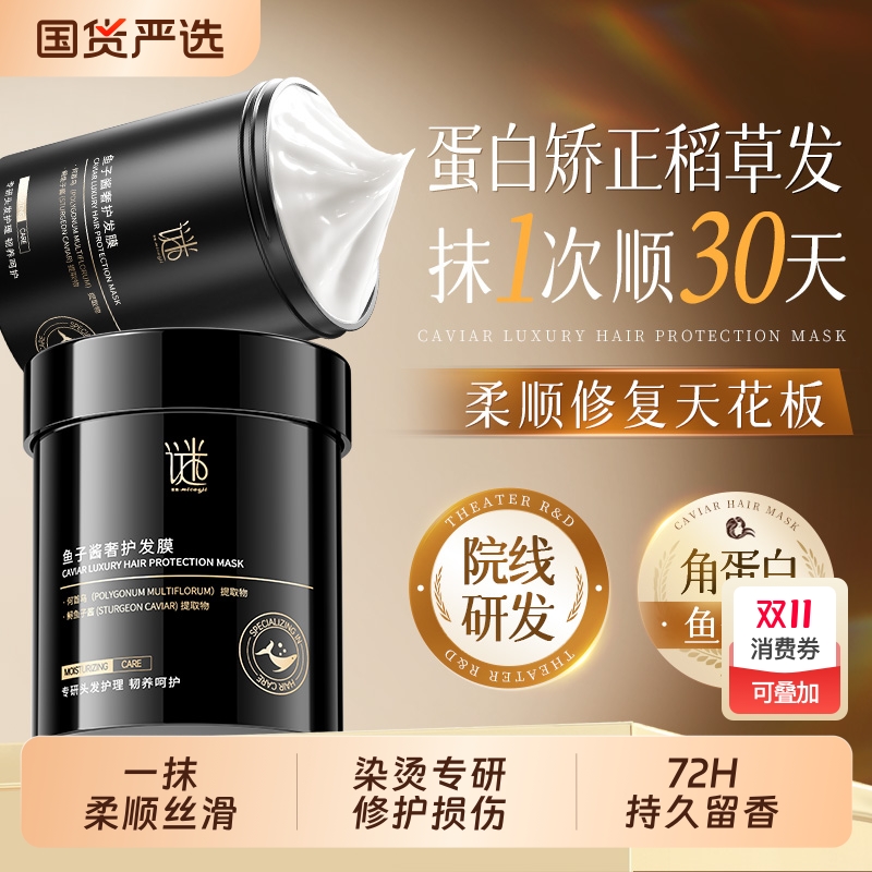 鱼子酱发膜修复干枯补水蛋白矫正柔顺顺滑毛躁免蒸护发素染烫受损