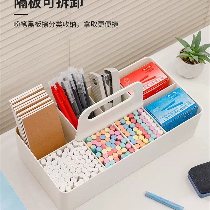 热销手提分格收纳篮可叠加多功能桌面办公讲台文具粉笔盒家用整理