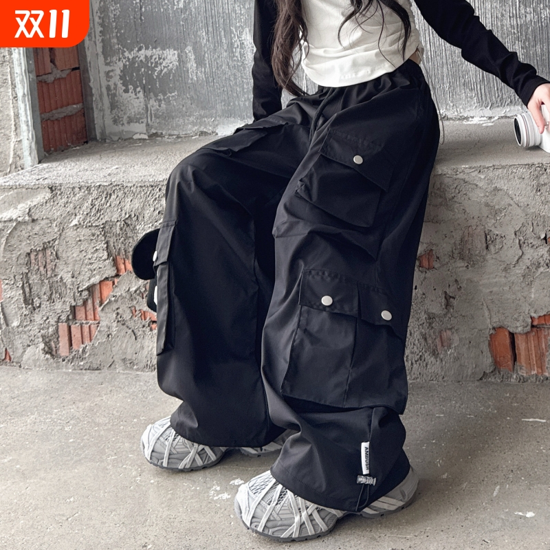 女童黑色工装裤春秋款2025新款儿童早秋装宽松阔腿裤12岁女孩裤