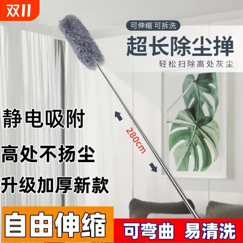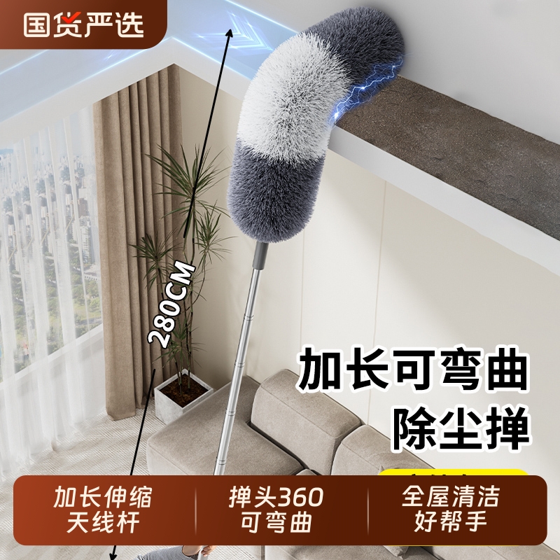 鸡毛掸子可伸缩杆静电除尘掸扫灰家用打扫灰尘天花板清洁加长吸附