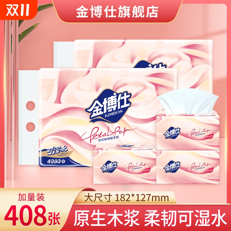 金博士抽纸4层加厚面巾妇婴可用家用纸面巾餐巾纸商用抽取式纸巾