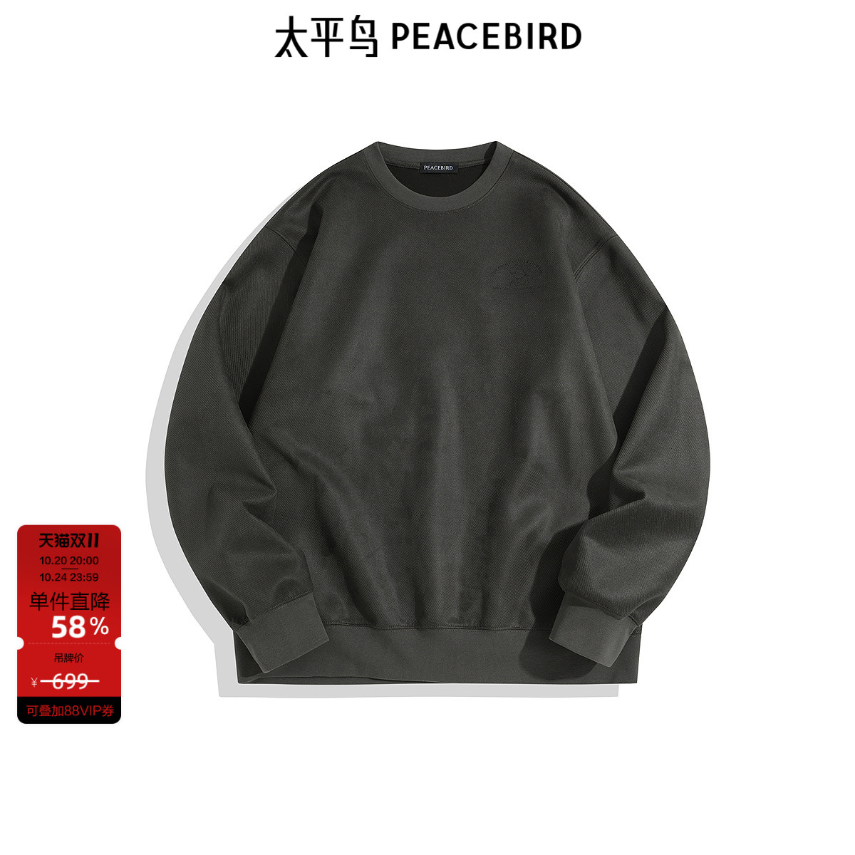 太平鸟男装 秋季仿麂皮圆领卫衣后背字母刺绣宽松套头休闲上衣