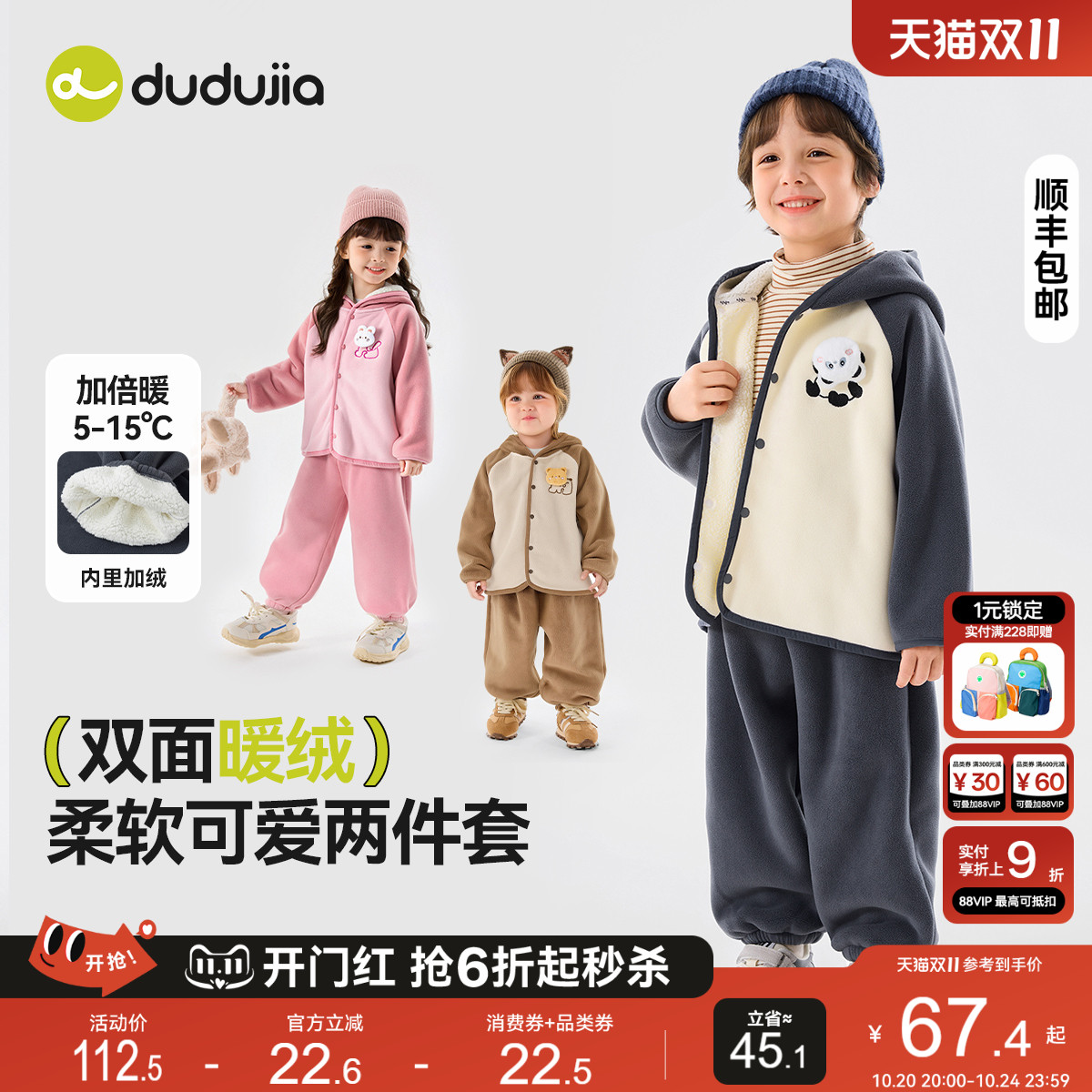 嘟嘟家男童套装冬季加绒卫衣裤子女童后上衣长裤冬装宝宝童装冬款